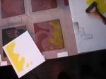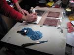 Second Language, the label releasing The Weighing of the Heart, run a suscription system whereby by suscribing to get the next 5 releases of the label (including my album), you will get an exclusive item with each album. For The Weighing… , we asked Iker Spozio, the author of almost all of my artwork so far, to make some hand-made prints: Iker made 6 different linoleum engravings, and printed 25 copies of each. You can see the engravings and part of the process below: no machine whatsoever is involved, it really is all done by hand, one colour at a time.