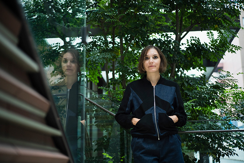 On the interview’s photos (by Yasuhiro Ohara), I’m wearing a jacket which is one of my favorite makes ever (for those of you who didn’t catch last year’s post series entitled Make your own clothes!, well, I make my own clothes ;-): I am now most filling in the gaps in my wardrobe (I haven’t bought any clothes in almost 3 years, with very rare exceptions, which means that when my older shop-bought clothes fall apart, I try to find the time to make those clothes myself). I really needed a mid-season jacket that wouldn’t get dirty too quickly (I love spending time outdoors) and was travelling-compatible (ie does not take a lot of room and does not crease like crazy when you have to rumple it up in 2 seconds onboard a packed plane). I also wanted to cut down on my fabric scraps, because when you sew, you invariably end up with lots of these. I had failed some winter trousers by using wool coating that was too thick, so I turned these into shorts, and ended up with the bottom parts and a few other scraps; there was also a black tailored jacket which I had acquired as a misguided youth in my early 20s, and which my mother kept in a wardrobe as the coating was of really good quality: I deconstructed the jacket, and since it contained tons of seams and cuts, I realized I would just be able to use the fabric scraps, and not the actual jacket parts (by this I mean I could not salvage entire sleeves or fronts). The way to go was color blocking and hacking a basic short jacket pattern (the Ivanne S Magnesium) into a teddy/bomber-style jacket, therefore allowing ever further use of scraps on the collar, cuffs and waistband. I spent almost 3 days just doing the color blocking (made more complicated by the fact that both fabrics had a nap) and top-stitching to keep the parts flat, but I ended up with almost zero scrap, and I now have a super comfy one-of-a-kind jacket (complete with matching shorts!) that has cost me (apart from my time) about 25 euros for the organic bamboo silk I used for the lining (available at the amazing fabric store Ray Stitch), elastic and zipper. Even though it was a lot of work, I’m so glad I took the time to do it, and increased my skill levels in the process!