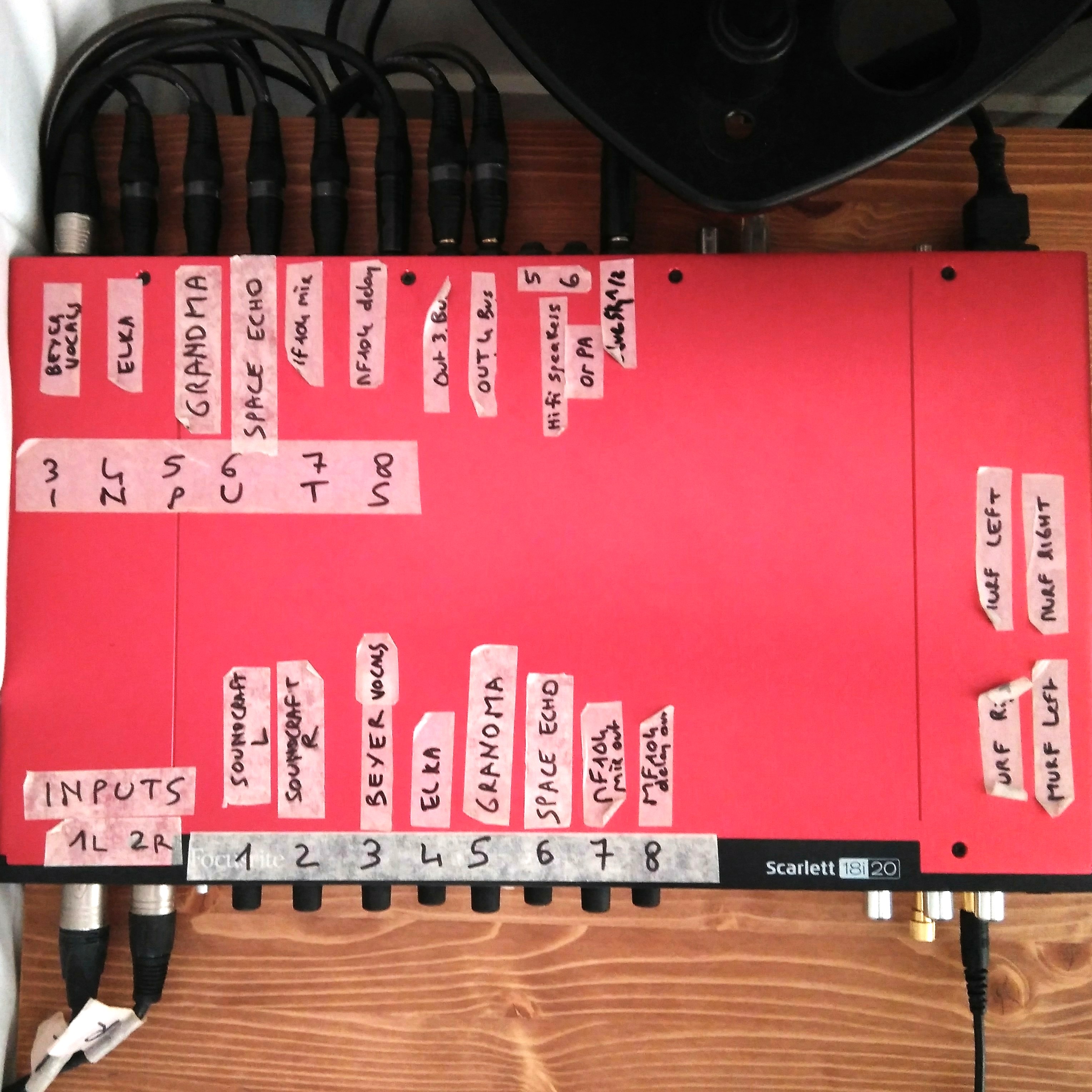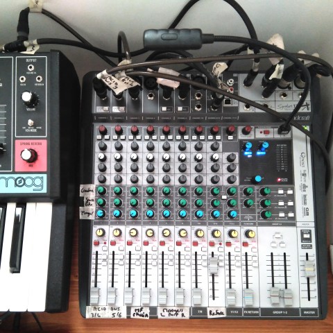 When I shifted to purely electronic music around 2016 with A flame my love, a frequency, one of the guiding principles was to not use looping pedals anymore, and since I had already recorded Captain of none in 2014/15 through my first decent soundcard, the Scarlett Focusrite 18i20, it just made sense to connect my ultra minimal setup (2 Critter and Guitari synths + 2 Moogerfooger pedals) to the Scarlett, and use that setup throughout the composing/recording process, bussing whenever necessary via my DAW (Acid – yes, I know 😁). But when the time came to play A flame live, I needed to bus the instruments and Moogerfoogers physically, which meant buying a mixing desk.