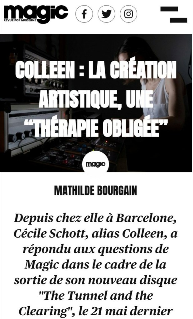 Magic (France), “Colleen: la création artistique, une thérapie obligée” – French