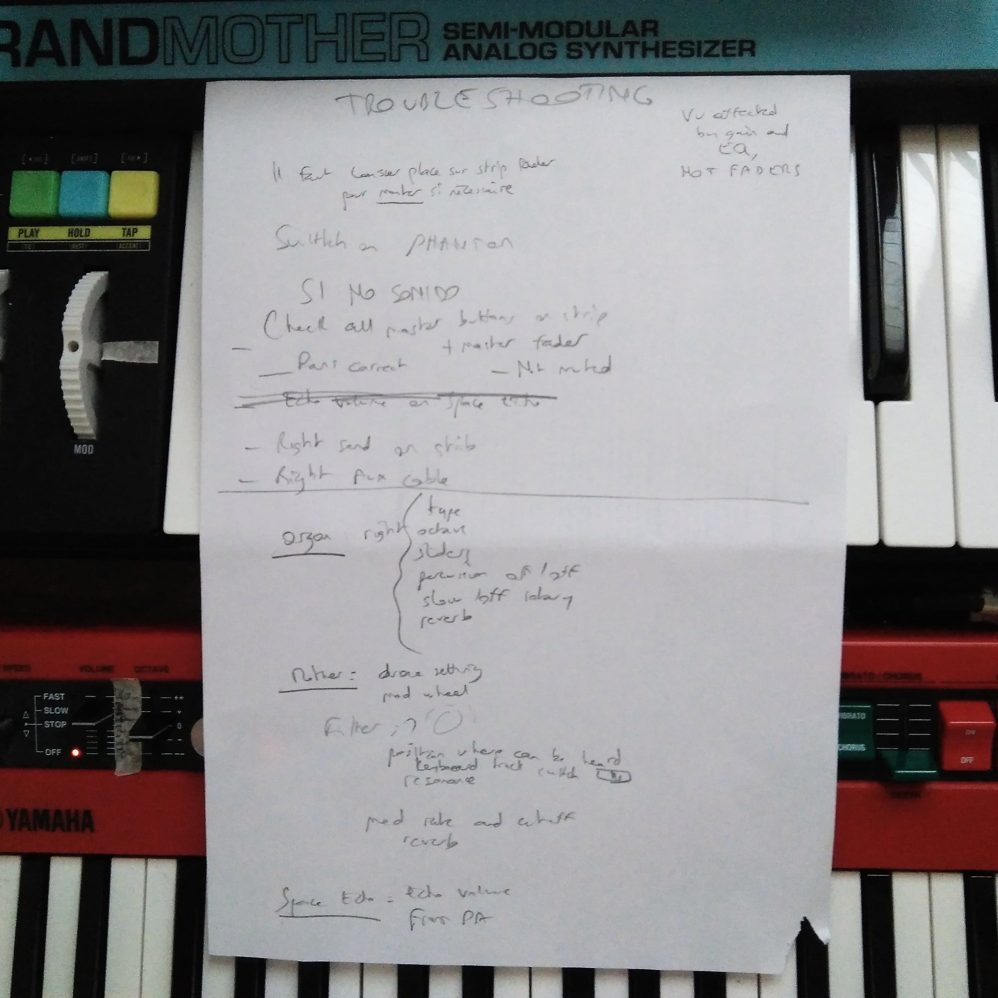 As I expected, performing the entire album live is totally doable, though technically challenging – you can see below a list that I made while rehearsing of all the potential problems that can crop up and how to troubleshoot them.