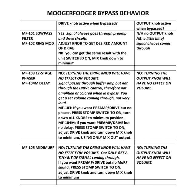 In the spirit of “let’s not rush to buy a new thing – as wonderful as it may be – when we actually already own something that may serve the same purpose”, I have now clarified for myself the fact that *all* Moogerfoogers can be used as analogue preamps/drive units, *without* the effect they’re intended to provide.Their bypass behavior puzzled me for a long time, as it varies across the pedal range, so testing each one both on and bypassed (as well as re-reading the manuals
