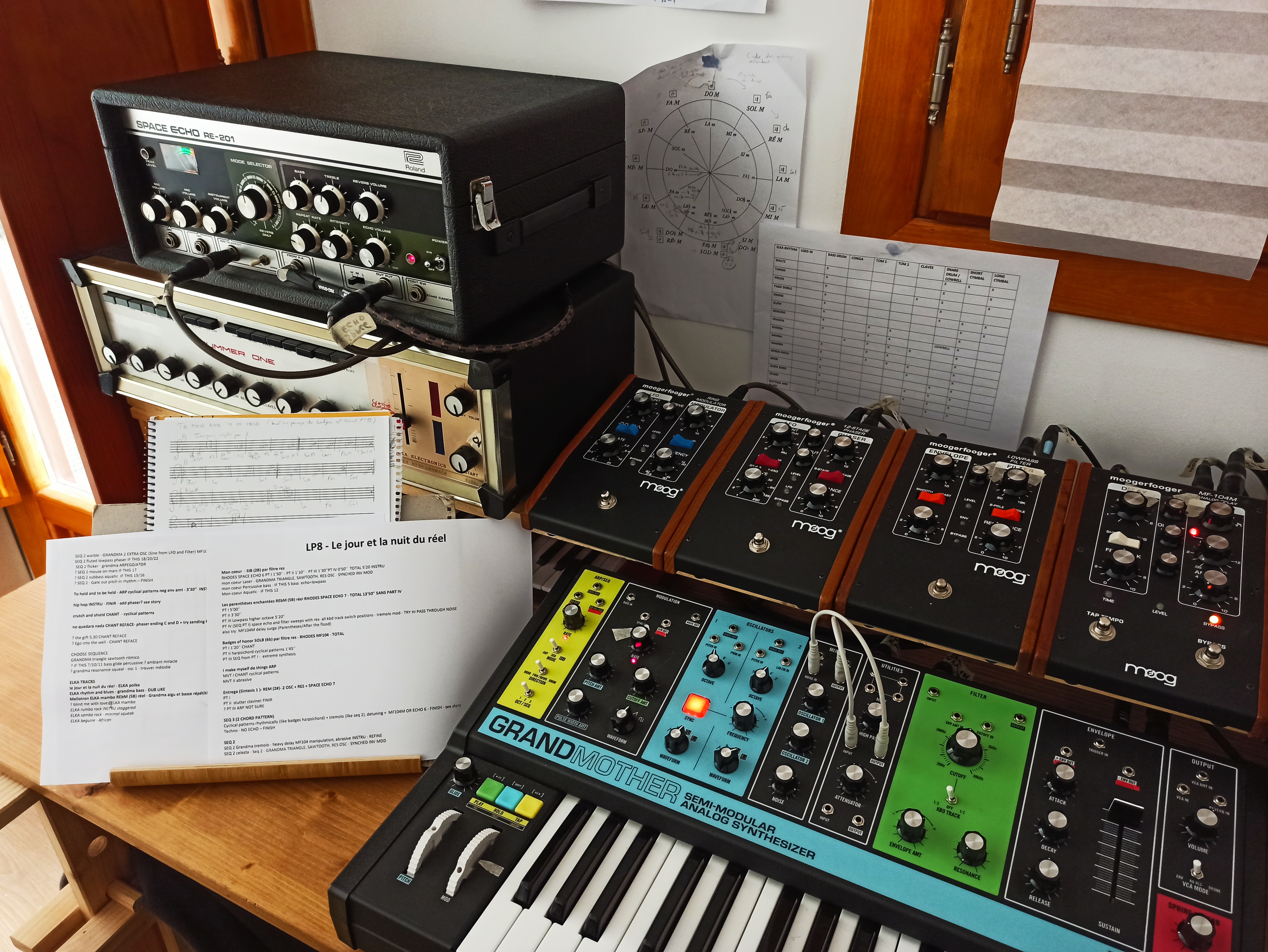 I started working on this album exactly one year ago, and I rapidly saw that it would be a kind of octopus-like creature. At the beginning several approaches competed for my attention: a couple of songs with singing that felt related to my last album The Tunnel and the Clearing in both sound and construction; sketches with the Elka Drummer One (I’ve been wanting to make a rhythm-focused album since 2018…); a renewed interest in the idea of a “suite” of compositions, possibly influenced by reading a massive history of Western music, and… SYNTHESIS, on the @moogsynthesizers Grandmother, overtaking my creative life in a way I hadn’t expected. What you nurture grows, and little by little the suite-like approach and the idea of synthesis variations overtook the other aspects, to the point where I feel some radical pruning of the other aspects is almost bound to happen.