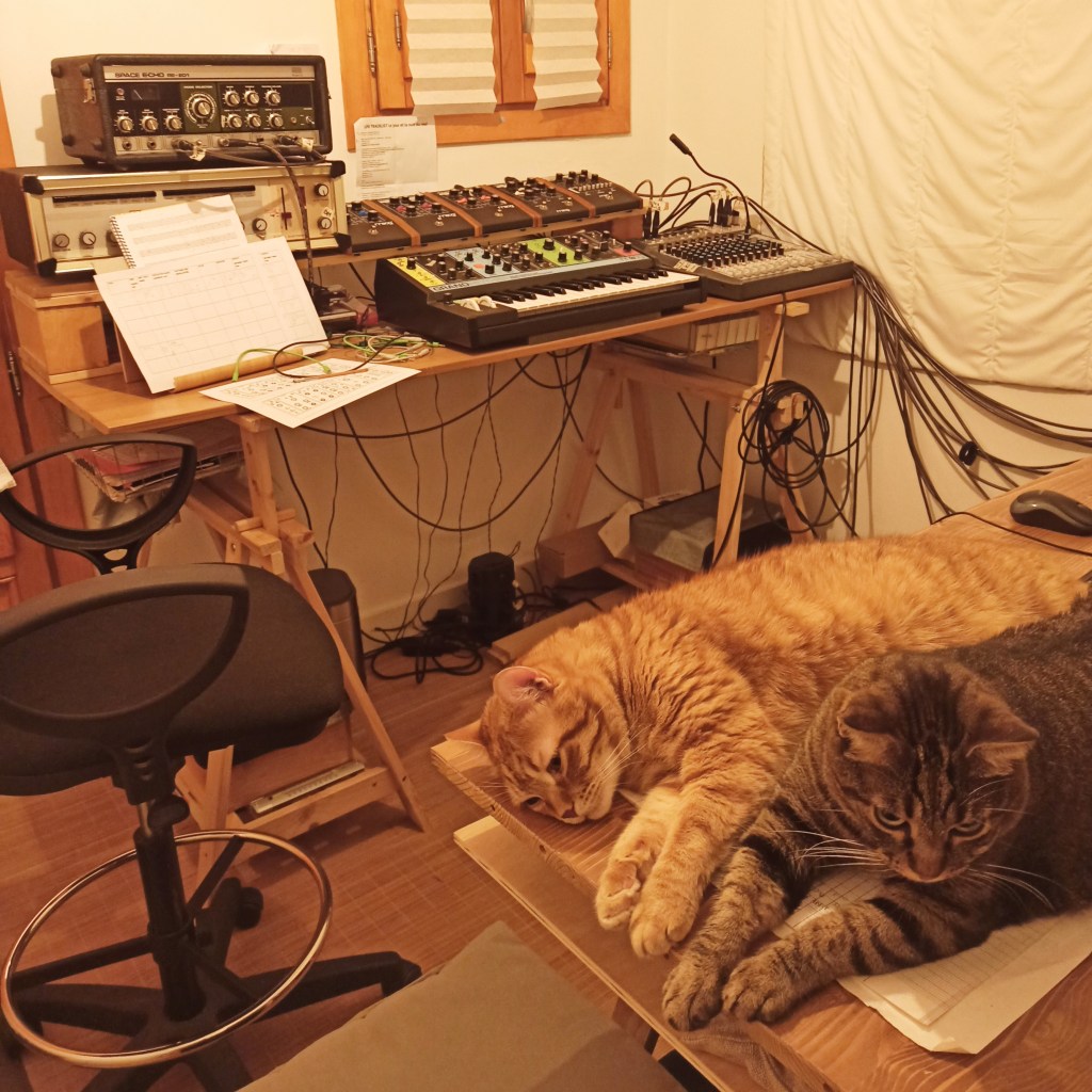With this album, I became fully absorbed by synthesis, and in terms of purely technical matters, well, over the past year I had encountered and solved a couple of hurdles along the way: bought a silent desktop computer just for music-making since my previous laptop made *terrible* noise, finally changed my DAW from T-Rex Acid to awesome Reaper when Acid started to severely malfunction after a Windows update, and also sent my Space Echo for a full revision to its daddies @soundgasltd last year.