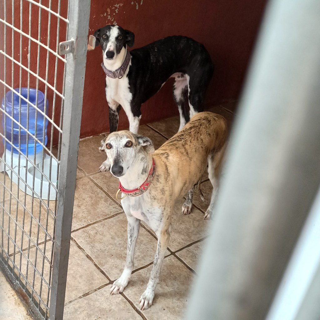 In any case, I wanted to let you know that this week marks a big turning point for me: on Monday I started volunteering at SOS Galgos here in Barcelona (we sent them almost 250$!). The plan is that I will go once a week, every week. Below a pic of beautiful Luna and Suri, hiding from the rain downpour we had on that day (Luna, the one at the bottom of the pic, as adopted this week, along with several other galgos and a podenco, so it’s been a beautiful week for the shelter!).